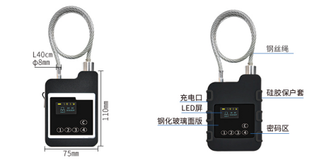 ◆ 锁体材质:锁体铝合金,锁杆为钢丝绳(标准长度40厘米,可定制其他尺寸)